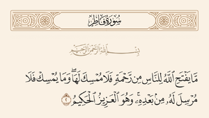 ﴿مَا يَفْتَحِ اللَّهُ لِلنَّاسِ مِنْ رَحْمَةٍ فَلَا مُمْسِكَ لَهَا وَمَا يُمْسِكْ فَلَا مُرْسِلَ لَهُ مِنْ بَعْدِهِ وَهُوَ الْعَزِيزُ الْحَكِيمُ ٢﴾ [فاطر:2]|﴿هر رحمتی را که خدا برای مردم گشاید بازدارندهای برای آن نیست و آنچه را که بازدارد پس از [بازگرفتن] گشایندهای ندارد و اوست همان شکستناپذیر سنجیدهکار ٢﴾