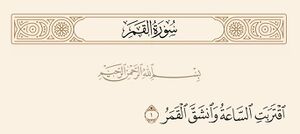 ﴿اقْتَرَبَتِ السَّاعَةُ وَانْشَقَّ الْقَمَرُ ١﴾ [قمر:1] ﴿به نام خداوند رحمتگر مهربان. نزدیک شد قیامت و از هم شکافت ماه ١﴾