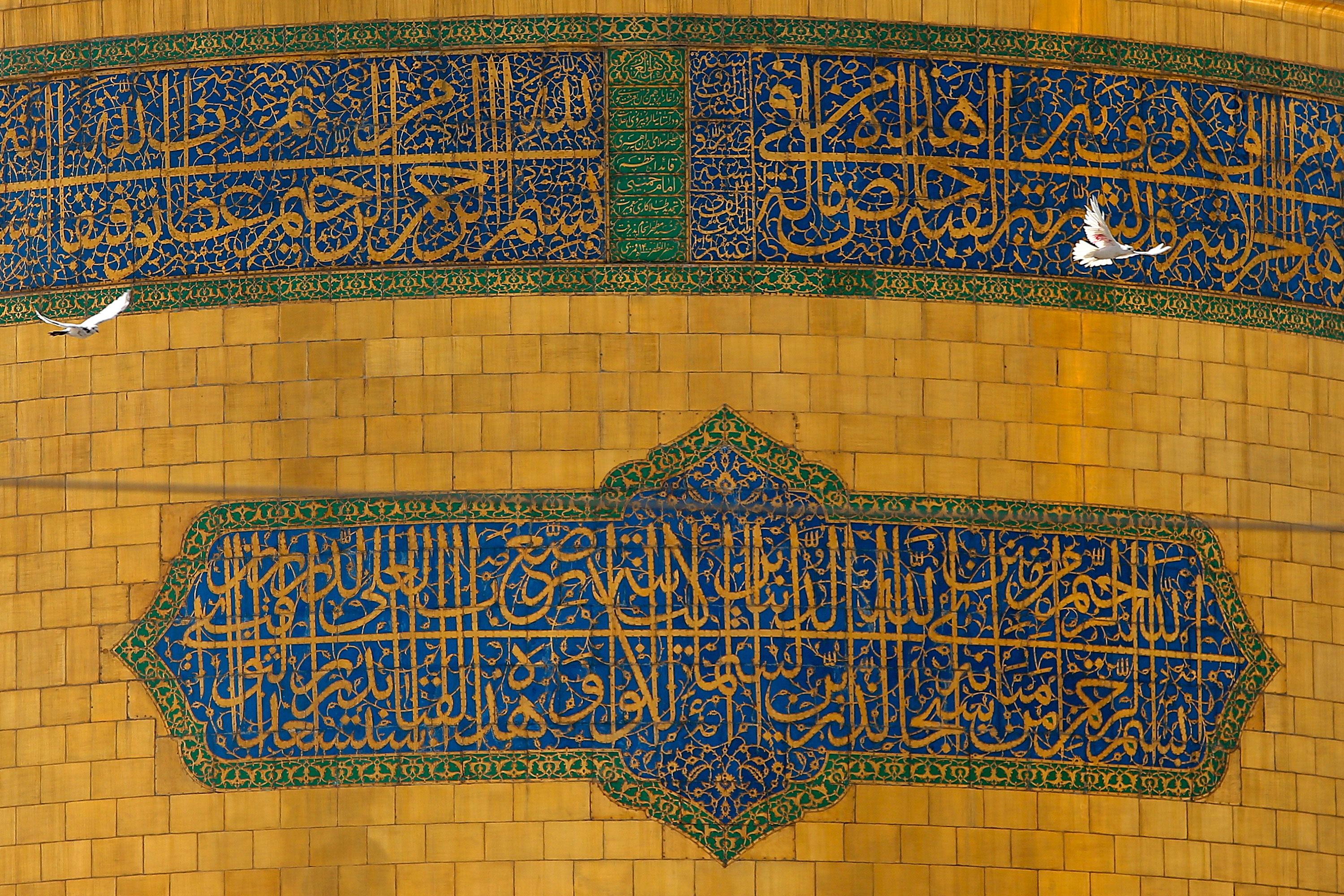 پرونده:کتیبه‌های گنبد طلای حرم امام رضا.jpg